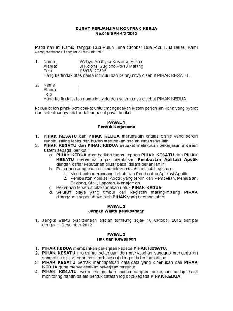 Hukum perjanjian ini berlaku secara sah ketika kedua belah pihak menandatangani spk bermaterai dan rangkap dua, satu. Saya baru diterima bekerja di salah satu perusahaan swasta. Tetapi ada cara khusus yang dilakukan hrd untuk membuat surat perjanjian: Pihak pihak yang terkait yang tertulis dalam surat biasanya pihak 1 perusahaan dan pihak 2 karyawan. _work working contract employee employees work space.