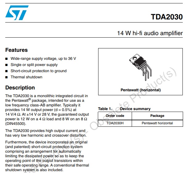 Tda 2030 Datasheet - Tda2030 Datasheet Humidity Sensor / The pin configuration of ic tda2030 includes the following.